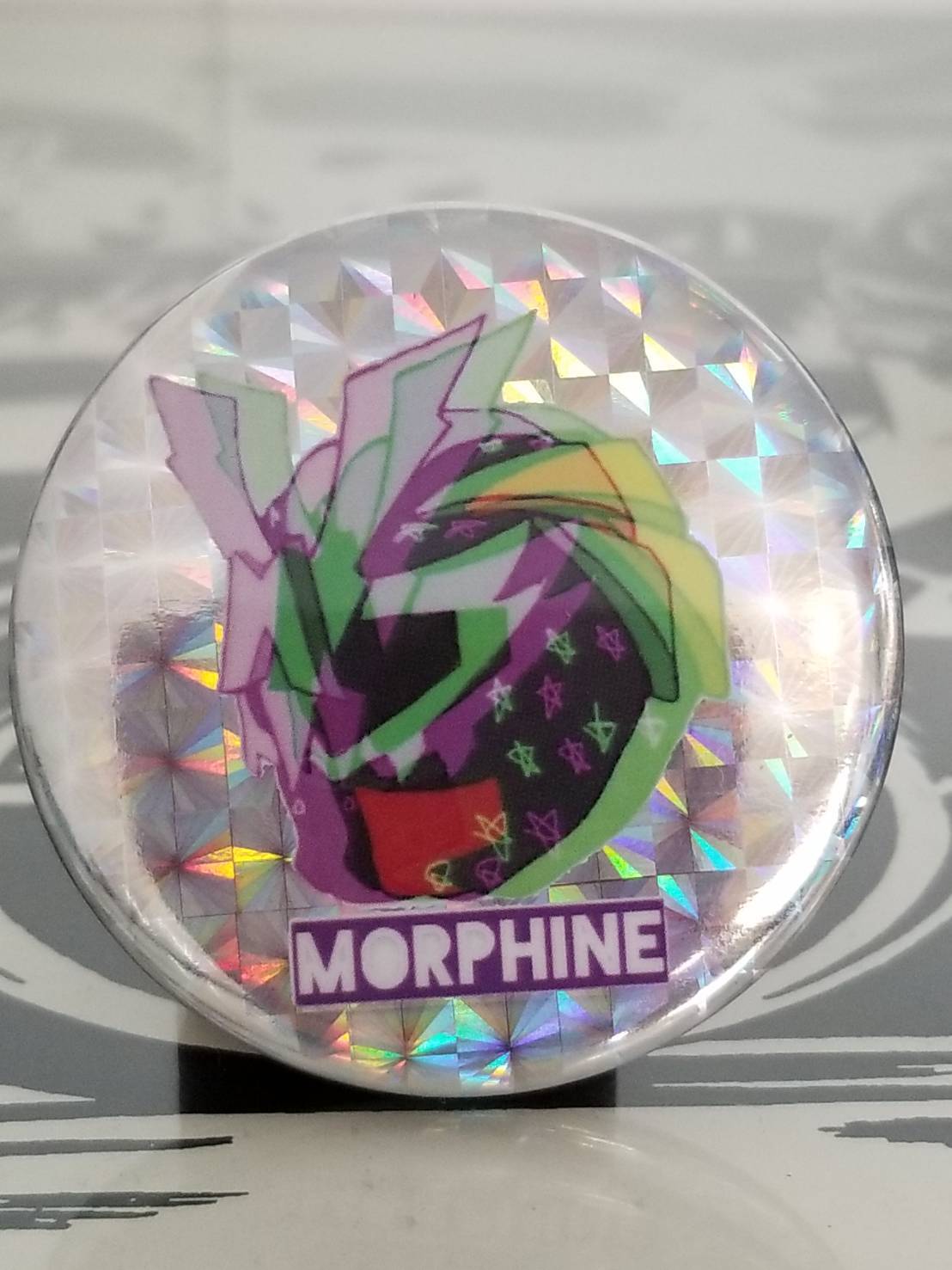 ビック〇マン風キラキラの缶バッジと、ドットのキャラクターに細かいキラキラの缶バッジの2種類があります。